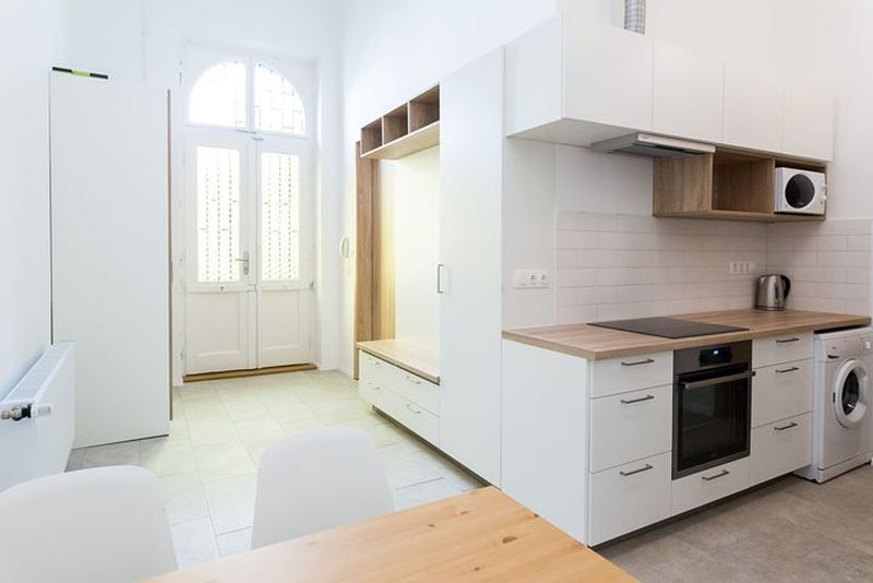 However, not only the building, but also this 3rd floor apartment has very GOOD FEATURES. Thanks to the high floor, all three rooms are bright and the noise of Rákóczi Street is hardly heard, even though it is a corner building. Two of the rooms face Szentkirályi Street, at least 50 m away from the busy road. The third room faces the inner courtyard.